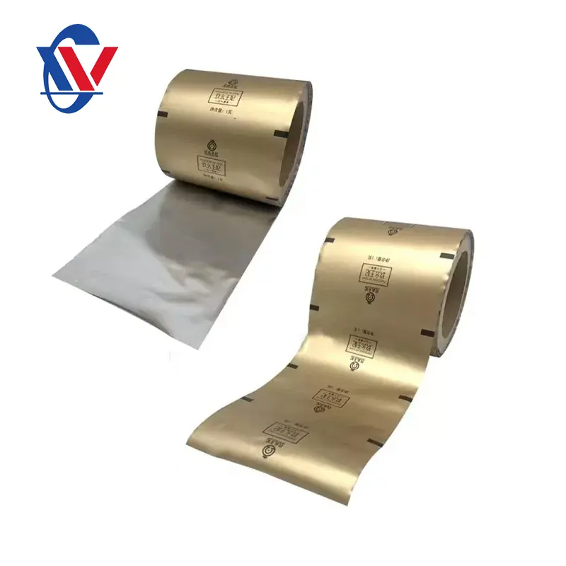 Fitur Produk: Aluminium foil memiliki sifat penghalang yang sangat tinggi dan secara efektif dapat mencegah penetrasi zat seperti oksigen, uap air, dan cahaya, sehingga melindungi barang-barang di dalam kemasan dari pengaruh lingkungan luar. Film gulungan kemasan foil memiliki kekuatan dan ketangguhan yang tinggi, dapat menahan kekuatan dan tekanan eksternal tertentu, serta melindungi barang dalam kemasan dari kerusakan. Film gulungan kemasan aluminium foil memiliki sifat tahan lembab, tahan jamur, dan anti serangga yang sangat baik, yang dapat memperpanjang umur simpan barang dalam kemasan.