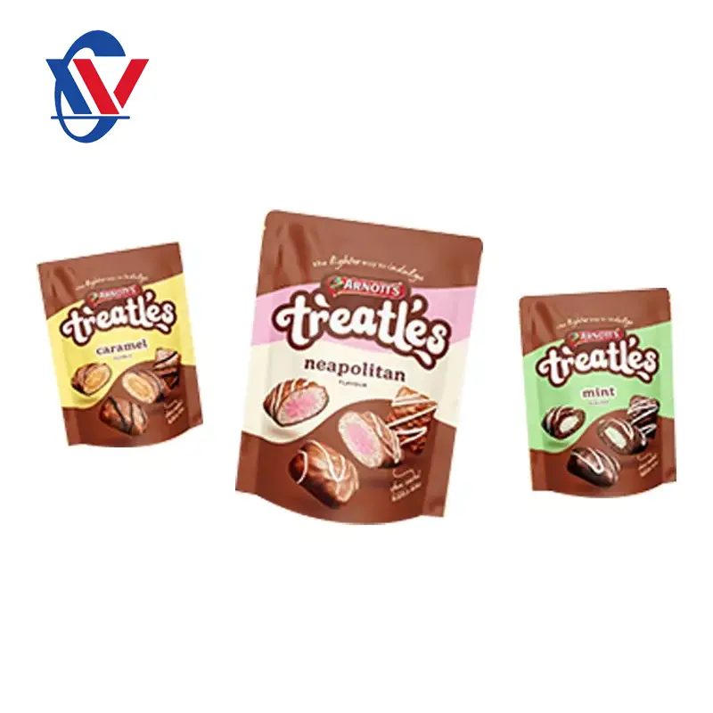 Tas stand populer untuk daya tarik estetika mereka. Seperti namanya, kantong cokelat berdiri tegak, membuatnya menonjol di iklan dan menyimpan lorong. Ini menghilangkan kebutuhan untuk berdiri membungkus cokelat, membuat mereka lebih menyenangkan bagi mata pelanggan Anda dan lebih nyaman untuk ngemil.