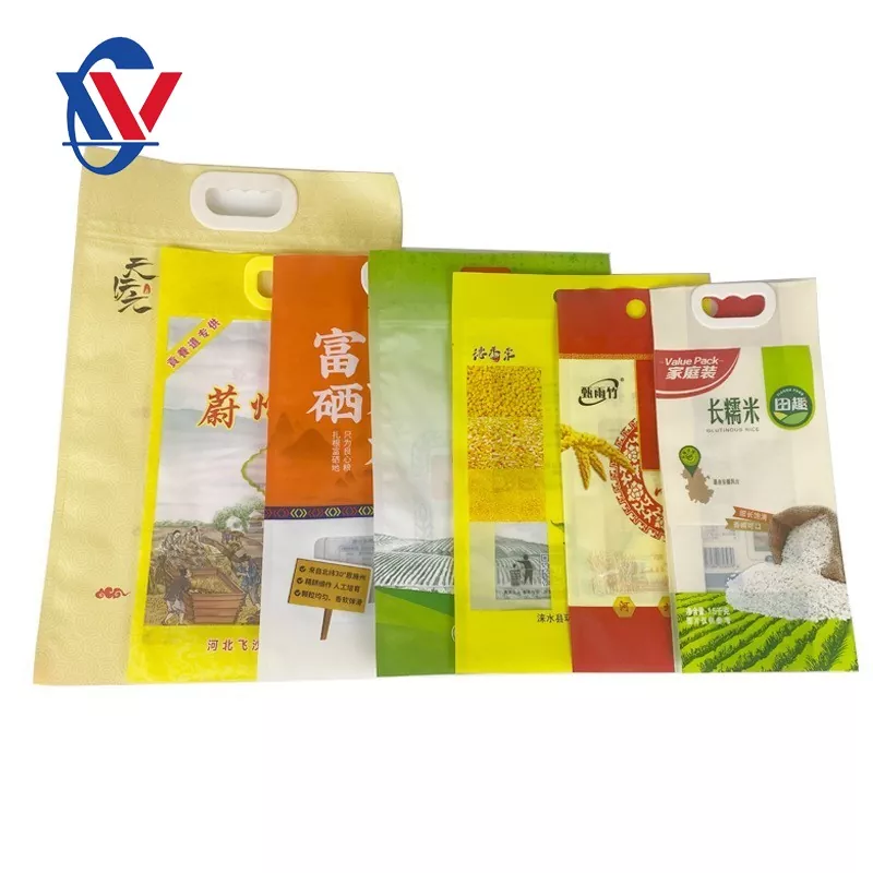 Tas Pengemasan Vacuum: Menggunakan teknologi pengemasan vakum, mereka memiliki sifat penyegelan yang baik, dapat mengurangi konsentrasi oksigen di lingkungan penyimpanan, menghambat intensitas respirasi beras dan reproduksi jamur, mencegah padi dari penuaan, jamur, dan serangga, dengan demikian menjaga kualitas beras yang lebih baik.