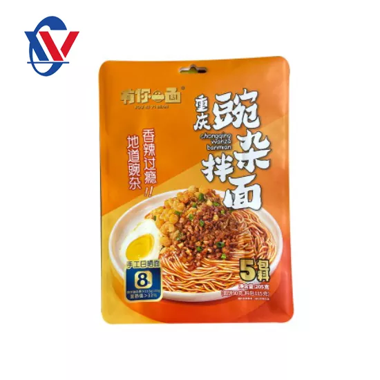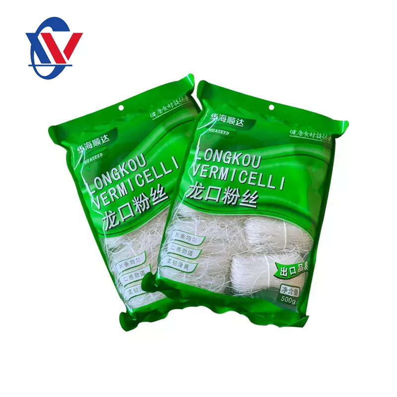 Kantong pengemasan mie beras memiliki berbagai desain, beberapa di antaranya menggunakan metode penyegelan empat sisi atau tiga sisi untuk mudah dibuka dan disegel kembali. Beberapa produk kelas atas juga akan mencetak pola atau informasi yang sangat bagus tentang kemasan untuk meningkatkan daya tarik produk dan citra merek. Skenario Aplikasi